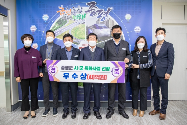 군은 충북도에서 주관한 2022년 시·군 특화사업 공모에서 우수상을 받아 특별조정교부금 40억원의 사업비를 확보했다.
