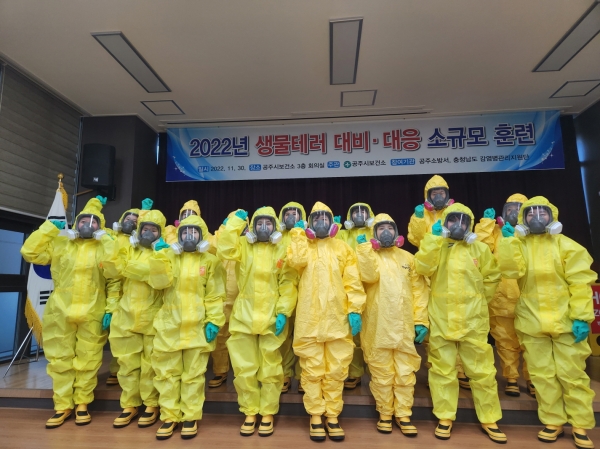 특히 충청남도 감염병관리지원단과 연계해 생물테러 발생에 따른 보건소 역할 및 대응 방법에 대한 교육은 물론 공주소방서와 함께 개인 보호복 착용 기법과 장비 사용법에 대한 시연과 실습 등 장비 사용 전문성을 함양하는 기회도 마련했다.