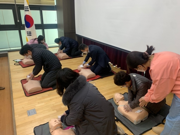 교육은 응급상황 발생 시 대처요령, 교육용 마네킹을 활용한 가슴압박 실습, 이물질에 의한 기도폐쇄 응급처치요령, 생활 속 응급 처치요령 등을 살펴보는 시간으로 진행됐다.