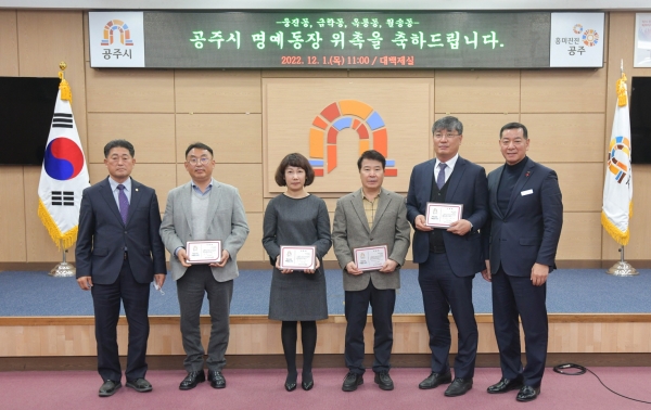 최원철 시장은 “각자의 분야에서 공주의 위상을 드높이고 계신 분들께서 고향을 사랑하는 마음으로 명예 동장직을 수락해 주신 것에 감사드린다”며 “풍부한 경험과 고견을 바탕으로 공주시를 위한 아낌없는 조언과 활동을 부탁드린다”고 말했다.