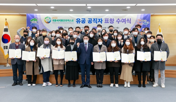 시는 ‘2022 계룡세계軍문화엑스포’의 성공적인 개최를 위해 묵묵히 노력해 준 직원들에 대해 유공 공직자로 선발하고 노고를 격려하고자 표창장을 수여했다.