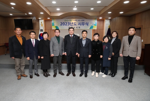 [충청뉴스큐] 홍성군의회는 2일 군의회 본회의장에서 2023년 시무식을 갖고 본격적인 의정활동에 돌입했다.