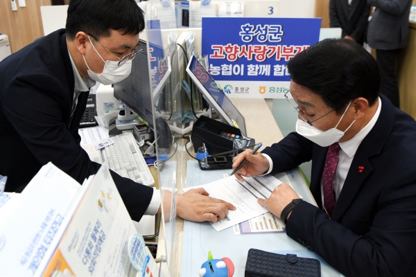 [충청뉴스큐] 이용록 홍성군수는 한만철 농협은행 홍성군지부장 및 군 간부 공무원과 2023년, 계묘년에 처음 시행되는 고향사랑기부제에 참여했다고 밝혔다.