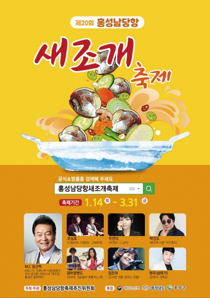 [충청뉴스큐] 홍성군 대표 먹거리 ‘새조개’를 제철에 맛볼 수 있는 ‘제20회 홍성남당항 새조개축제’가 오는 14일부터 31일까지 홍성군 서부면 남당항 축제공원 일원에서 3년 만에 대면 축제로 전 국민을 찾아간다.
