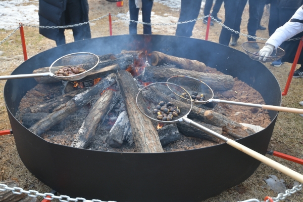 대형화로에서 알밤을 구워먹는 대표 체험 프로그램에는 옹기종기 모여 알밤을 구워 먹는 재미를 만끽하기 위한 관광객들로 북새통을 이뤘다.