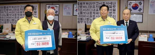 같은날 군민 이병옥 옹도 태안군청 군수실을 방문해 성금 200만원을 기탁하며 지역사회에 온기를 전했다.