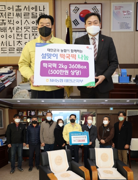 [충청뉴스큐] 농협 태안군지부와 태안군품목농업인연구연합회가 설 명절을 앞두고 태안군민에 온정을 전했다.
