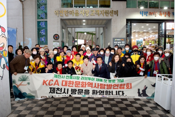 [충청뉴스큐] 제천시는 지난 14일 역전한마음시장에서 2023년 계묘년 새해 첫 번째 전통시장 러브투어 방문객 환영식을 했다.