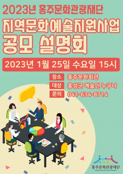 한편 재단에서는 ‘2023년 지역문화예술지원사업’공모에 대한 사업설명회를 오는 25일 오후 오후 3시에 홍주문화회관 소공연장에서 개최할 예정이다.