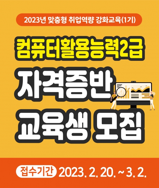 센터 관계자는 “이번 교육을 시작으로 기술, 전산회계1·2급 등 다양한 직무교육을 추가로 실시할 계획이니 많은 관심 부탁드린다”고 말했다.
