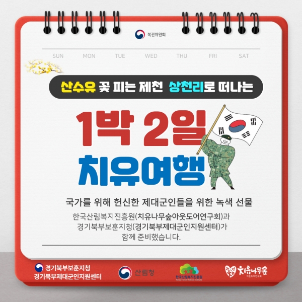 이 사업은 산림청, 국가보훈청과 공동으로 추진하는 행사로 국가를 위해 헌신한 중장기 제대군인 30명을 대상으로 진행될 예정이다.