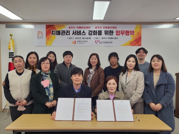 [충청뉴스큐] 공주시 치매안심센터는 지난 6일 자원봉사센터 회의실에서 치매환자 맞춤형 사례관리 프로그램 운영을 위해 공주시자원봉사센터와 업무협약을 체결했다.