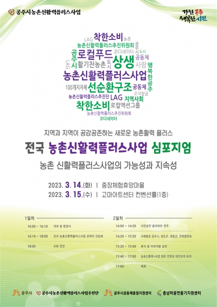 [충청뉴스큐] 공주시는 오는 14~15일 아트센터 고마에서 ‘전국 농촌신활력플러스사업 심포지엄’을 개최한다고 밝혔다.