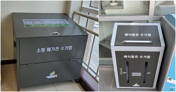 [충청뉴스큐] 제천시가 자원순환 활성화를 도모하고 환경오염을 최소화하고자 폐식용유, 소형 폐가전 수거함을 제천시 전역에 설치했다.