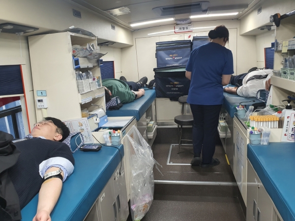 대한적십자사 대전·세종·충남혈액원이 헌혈 차량을 지원한 가운데 헌혈 참여자들은 헌혈도 하고 각종 혈액검사를 무료로 해줘 건강도 챙기는 등 일석이조의 효과라며 기쁜 마음으로 참여했다.