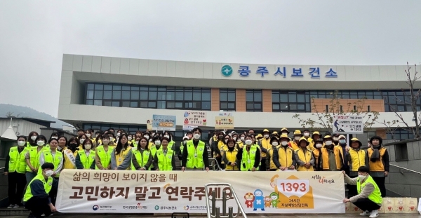 특히 지난 6일에는 대한노인회 공주시지회, 공주시청소년상담복지센터, 금강종합사회복지관 등 지역사회 유관기관 100여명과 함께 “삶의 희망이 보이지 않을 때 고민하지 말고 연락주세요”라는 가두캠페인과 우울감 검사 부스를 산성시장 일원에서 운영했다.
