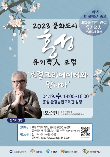 [충청뉴스큐] 홍성문화도시센터는‘로컬크리에이터와 만나다’라는 주제로 ‘문화도시 홍성 유기적人 1차 포럼’을 4월 19일 오후 2시 홍성 환경농업교육관에서 개최한다.