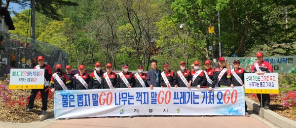 [충청뉴스큐] 계룡시는 봄철 산불조심기간을 맞아 지난 19일 등산로와 산림연접지를 대상으로 인화물질제거 및 산림 정화활동을 전개했다고 밝혔다.