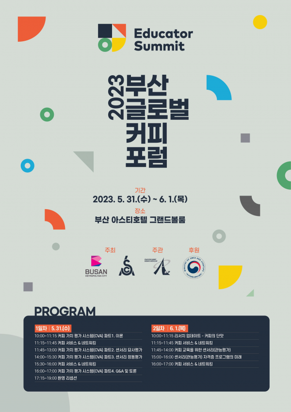 이번 포럼은 ‘스페셜티 커피협회’의 연례 커피 학술제인 ‘스페셜티 커피협회 센서리 서밋’의 국제적 커피 특화교육 판으로 구성해 부산에서 처음으로 열린다.