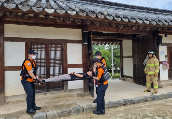 시는 목조문화재 특성상 화재에 취약한 만큼 사계고택 화재 상황을 가정해, 초기 대응부터 구호 조치에 이르기까지 시청 각 부서와 유관기관의 유기적인 대응·협조체계를 점검했다.