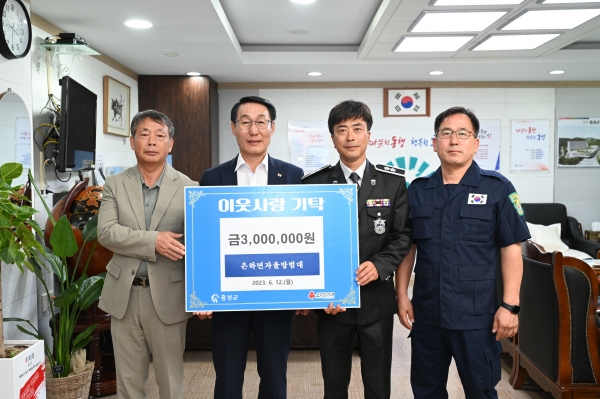 [충청뉴스큐] 은하면 자율방범대가 지난 6월 12일 관내 소외된 이웃들을 위해 사용해 달라며 이웃돕기 성금 300만원을 홍성군에 기탁했다.