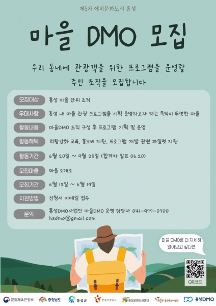 [충청뉴스큐] 홍성군에 따르면 홍성DMO사업단에서 읍·면단위 DMO 육성을 통한 마을관광 활성화를 위해 참여마을을 19일까지 2개소 모집한다고 밝혔다.