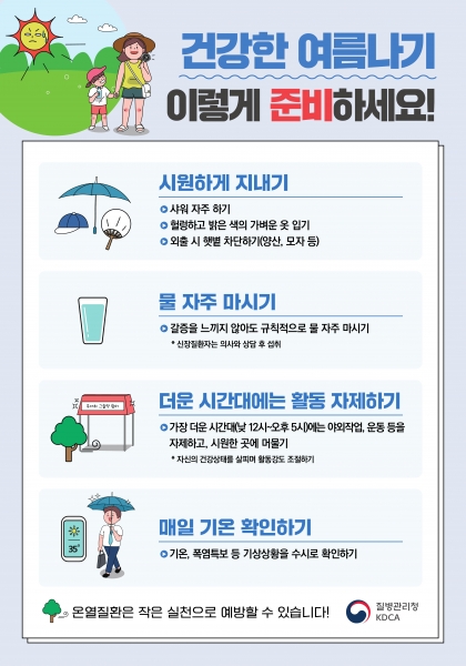 온열질환을 예방하기 위해서는 ‘시원하게 지내기, 물 자주 마시기, 더운 시간대에는 활동 자제하기’ 등 생활 속 작은 실천으로 폭염 대비 건강 수칙을 준수하는 것이 중요하다.