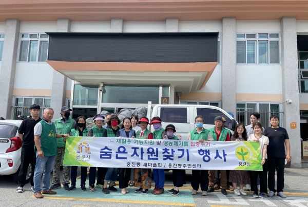 웅진동 새마을회 지도자와 회원 10여명이 참석한 가운데 가정과 농경지에 방치돼 있는 폐지, 폐형광등, 폐건전지, 영농폐기물 등 재활용 가능한 자원을 수거했다.