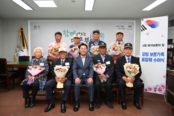 [충청뉴스큐] 부여군은 21일 군수 집무실에서 보훈문화 활성화 및 지역사회 발전에 앞장선 모범 국가유공자와 보훈가족 8명에게 표창패를 수여했다.