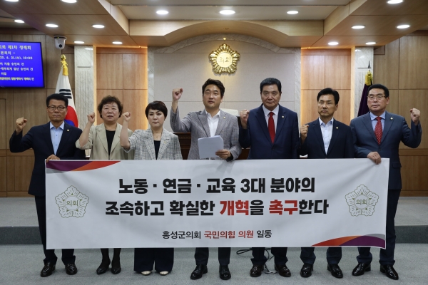 [충청뉴스큐] 충남 홍성군의회 국민의힘 의원은 21일“노동·연금·교육 3대 분야의 조속하고 확실한 개혁을 위한 촉구 성명서”를 발표했다.