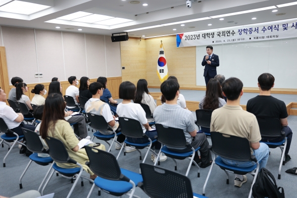 [충청뉴스큐] 계룡시애향장학회는 23일 시청 대회의실에서 2023년 대학생 국외연수 장학생 16명에게 장학증서 수여식을 열었다고 밝혔다.