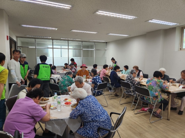 무더운 날씨에도 불구하고 어르신들과 소외계층 300여명에게 짜장면을 대접하기 위해 월송동 주민자치회와 주민 20여명이 자발적으로 봉사에 참여해 더욱 뜻깊은 시간이 됐다.