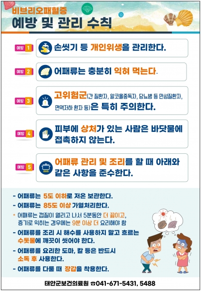 [충청뉴스큐] 태안군이 본격적인 여름을 맞아 비브리오패혈증 예방을 위해 군민들의 각별한 주의를 당부했다.
