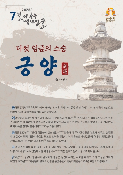 [충청뉴스큐] 공주시는 신라 말~고려 초에 활동한 공주 출신의 승려 정진대사 긍양을 7월의 역사인물로 선정했다고 30일 밝혔다.