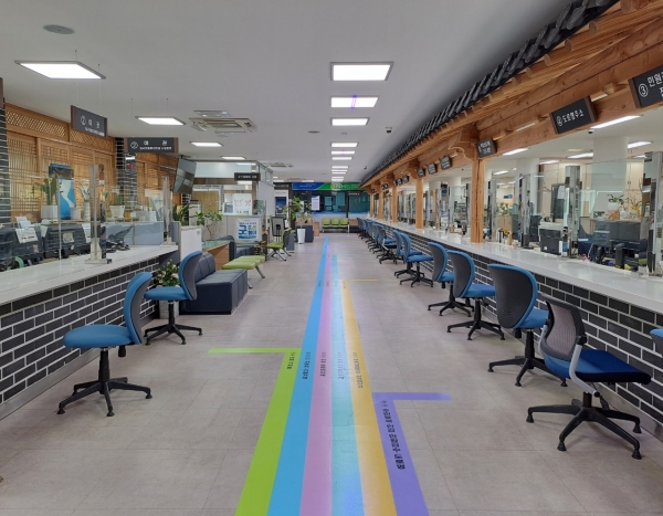 이에 부여군은 민원실 입구부터 업무별로 색상을 달리한 유도선을 바닥에 부착해 시각적 효과를 높였으며 처음 방문하는 민원인도 쉽게 창구를 찾아갈 수 있도록 했다.