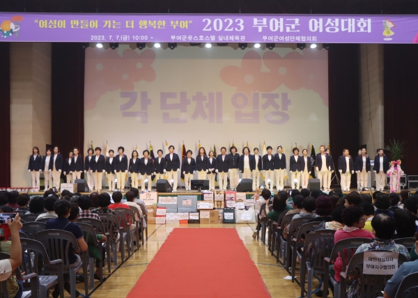[충청뉴스큐] 부여군여성단체협의회는 “여성이 만들어가는 더 행복한 부여”라는 슬로건 아래 지난 7일 부여군유스호스텔 실내 경기장에서 ‘2023 부여군 여성대회’를 개최했다.