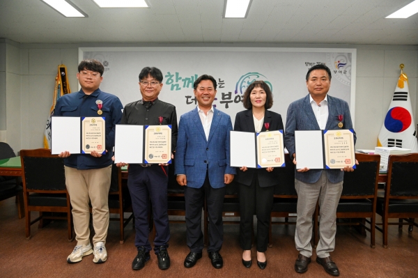 [충청뉴스큐] 부여군이 지난 14일 정부 모범공무원으로 선정된 직원들에 증서 및 표장을 전수했다.