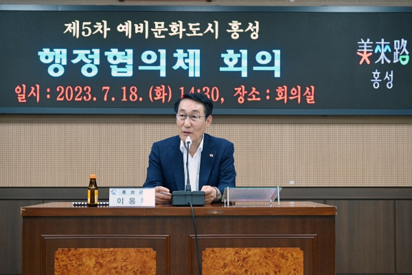 [충청뉴스큐] “충남도 내 유일한 제5차 예비문화도시 홍성군이 법정문화도시 최종 선정될 수 있도록 모든 부서가 협력하고 군민들이 실질적인 혜택이 돌아갈 수 있도록 노력해 주십시오.” 이용록 군수는 18일 오후 2시 30분 군청 회의실에서 개최된 법정문화도시 지정을 위한 행정협의체 회의에서 이같이 밝히고 오는 10월 법정 문화도시 최종 선정에 사활을 걸어달라고 주문했다.