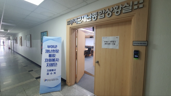 이에 따라 군은 자치행정과, 안전총괄과 등 2개 부서와 8361부대 3대대의 협업하에 자원봉사 통합상황 T/F팀을 부여군 재난상황실에 설치했다.