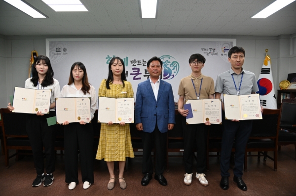 군은 이와 더불어 새올민원행정과 국민신문고 분야에서 가장 많은 민원처리 성과를 거둔 상하수도사업소 한국진 주무관과 도시건축과 송지윤 주무관을 5~6월 민원처리 마일리지 우수자로 표창했다.