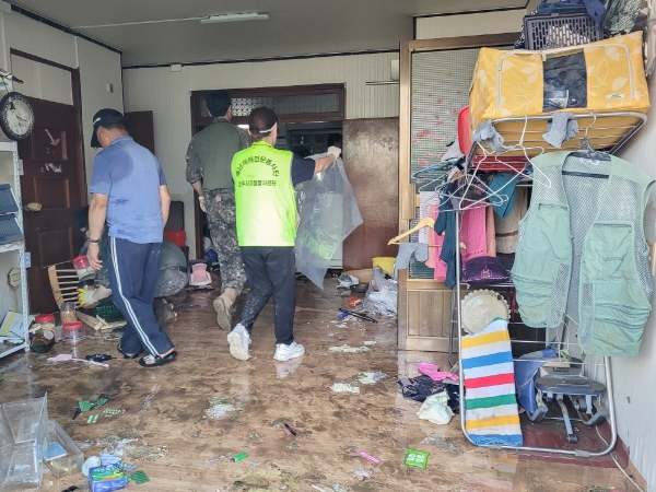 수해 복구에 참여한 인력을 살펴보면 지난 23일까지 자원봉사단체 2555명을 비롯해 군인 2854명, 경찰·소방 791명, 공무원 1174명, 개별 봉사자 및 기간제근로자 3285명 등 총 1만 659명이 참여한 것으로 파악됐다.
