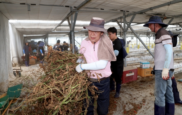 군은 지난 25일 가세로 군수를 비롯한 공직자 40명이 청양군 청남면을 찾아 비닐하우스 및 농경지 수해 복구 등 봉사활동을 펼쳤다고 밝혔다.