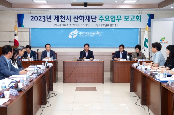 인재육성재단은 하반기 장학생 선발 제16회 제천 꿈나무 장학퀴즈 제1회 대학입시박람회 등 5개 주요사업을, 문화재단은 알고가는 미술관 나들이 하소생활문화센터 산책 운영 활성화 2023년 기초단위 생활문화 확산 지원사업 등 48개 주요사업을, 복지재단은 사회복지시설 수탁운영관리 사회복지종사자 힐링캠프 위기가구 긴급생계비 지원 등 18개 주요사업을, 한방바이오진흥재단은 글로컬 한방천연물산업 육성사업 제천한방힐링아카데미 운영사업 제천 한방바이오박람회 개최사업 등 14개 주요사업을 공유했다.