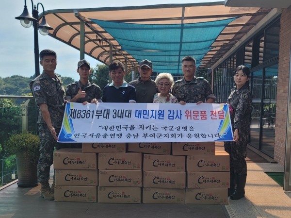 [충청뉴스큐] 한국자유총연맹 부여군지회는 지난 3일 제8361부대 3대대를 방문해 대민 지원에 나선 장병들에게 감사의 위문품을 전달했다.