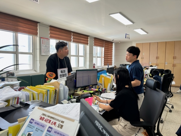 특이민원 모의훈련 흐름은 민원실 비상 상황 발생 시 대응반의 대응임무 숙지와 긴급 상황 발생 시 민원실에 설치된 비상벨 위치 및 정상 작동 여부, 민원실 내 구축된 비상벨을 눌러 신속하게 경찰이 출동하는 협조체계 등을 점검하며 유사시 직원과 방문 민원인들의 안전 확보에 중점을 두고 진행됐다.