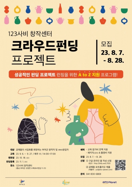 [충청뉴스큐] 부여군 123사비창작센터가 마케팅 역량 강화를 통해 공예 상품의 사업화를 지원하는 ‘크라우드 펀딩 프로젝트’ 참가자를 모집한다.