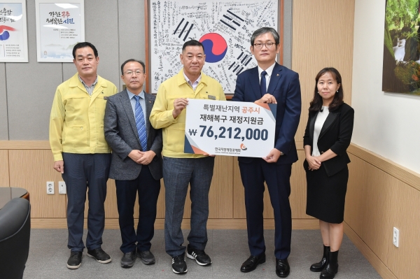 [충청뉴스큐] 공주시는 지난 10일 한국지방재정공제회로부터 특별재난지역 재해복구 재정지원금으로 7600만원을 전달받았다고 밝혔다.