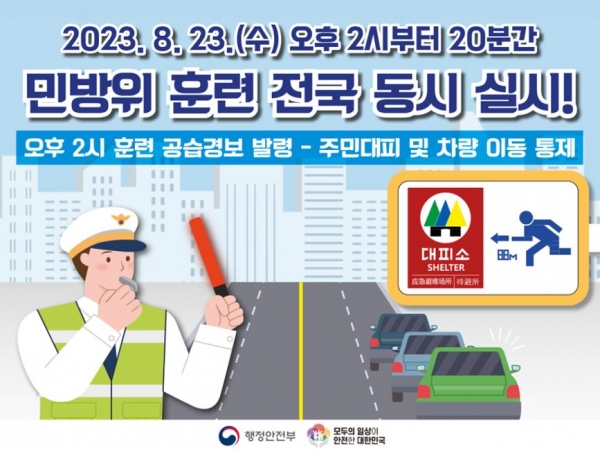 시 관계자는 “이번 민방공 대피훈련은 시민의 생명과 재산을 보호하기 위한 훈련으로 시민들의 자발적이고 질서 있는 참여가 필수적이기 때문에 불편함이 있더라도 적극적으로 훈련에 동참해 줄 것”을 당부했다.