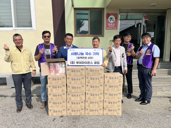 [충청뉴스큐] 부여라이온스클럽은 지난 14일 부여읍 행정복지센터를 방문해 관내 53개 마을 경로당에 어르신 식사를 위한 국수를 기탁했다.