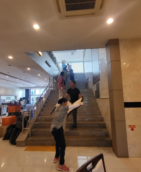 해당 장례식장은 지난 7월 집중호우로 당시 침수 피해를 크게 입은 곳으로 우성면체육회 회원들은 집기류와 가구류 등을 재정비하며 구슬땀을 흘렸다.